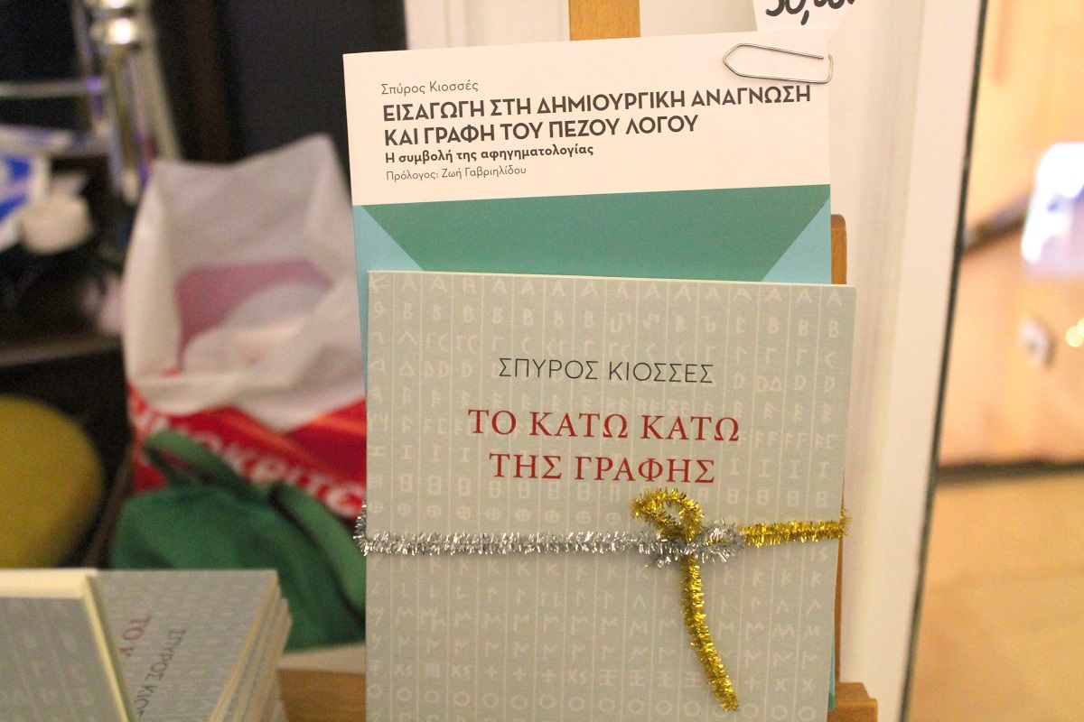 Στην εκδήλωση παρουσίασης του βιβλίου του Σπύρου Κιοσσέ «Εισαγωγή στη δημιουργική ανάγνωση και γραφή του πεζού λόγου: η συμβολή της αφηγηματολογίας» - Με ομιλήτριες τις κκ. Ζωή Γαβριηλίδου και Κατερίνα Σχοινά και τον συγγραφέα Κώστα Καβανόζη σε ρόλο ερωτώντα.